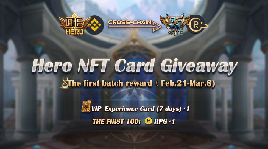 We are thrilled that the NFT Hero Card Cross-Chain Giveaway officially starts today! DeHeroGame prepared rich rewards for players who transfer their NFT hero cards from BSC to Rangers Protocol. Come and grab your chance!Thanks for reading Dehero’s Newsletter! Subscribe for free to receive new posts and support my work.